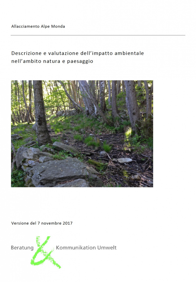 Das Baugesuch für die landwirtschaftliche Erschliessung der Alpe Monda oberhalb Bellinzona (Anpassungen am bestehenden Fahrweg, Neubau eines Abschnitts) erforderte eine umfassende Analyse vor Ort und Vorschläge für die Lösung potenzieller Konflikte. Unser Beitrag bestand hauptsächlich darin, die Projektauswirkungen auf die Umwelt zu prüfen, allfällige Schäden zu benennen und mittels Projektanpassungen zu minimieren; ein wichtiger Teil des Auftrags bestand auch im Kontakt zu den Behörden. Das Vorhaben ist zwar nicht UVP-pflichtig gemäss UVP-Verordnung, doch richtete sich unser Vorgehen nach den dortigen Vorgaben.