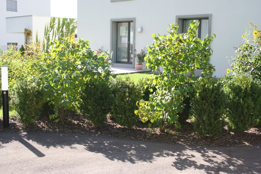 Eine naturnahe Gestaltung macht das Wohnumfeld abwechslungsreich, farbig und lebendig. Sie kann ohne Weiteres mit den – gerade in Schwyz oft anzutreffenden – traditionellen Formelementen des Gartenbaus zu einem stimmigen Ganzen zusammengeführt werden.